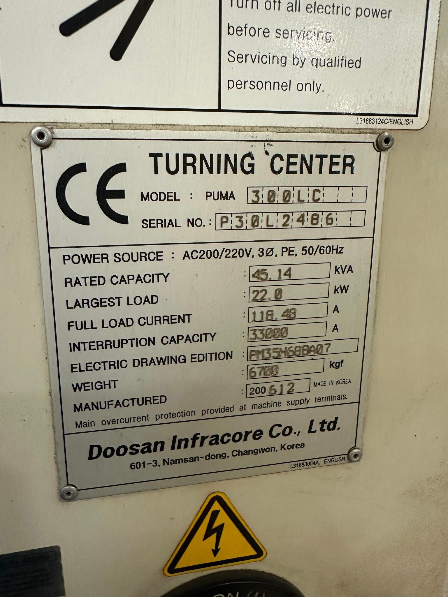 2006 DOOSAN PUMA 300LC CNC LATHE, 15″ CHUCK, LOW HOURS