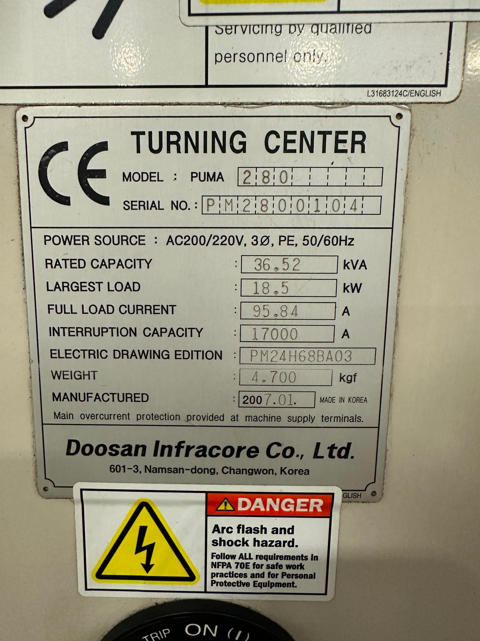 2007 DOOSAN PUMA 280 CNC LATHE, 10″ CHUCK, LOW HOURS