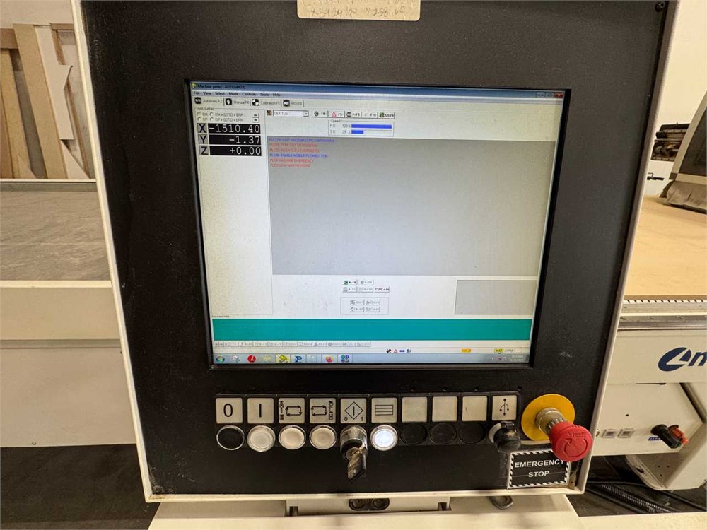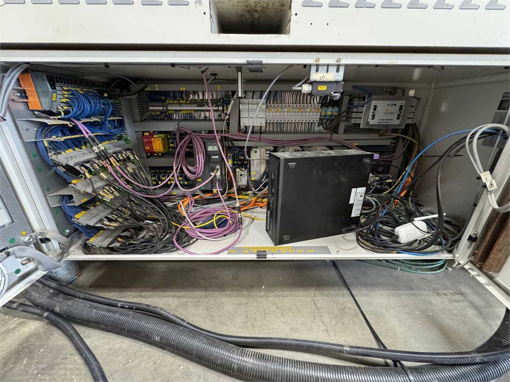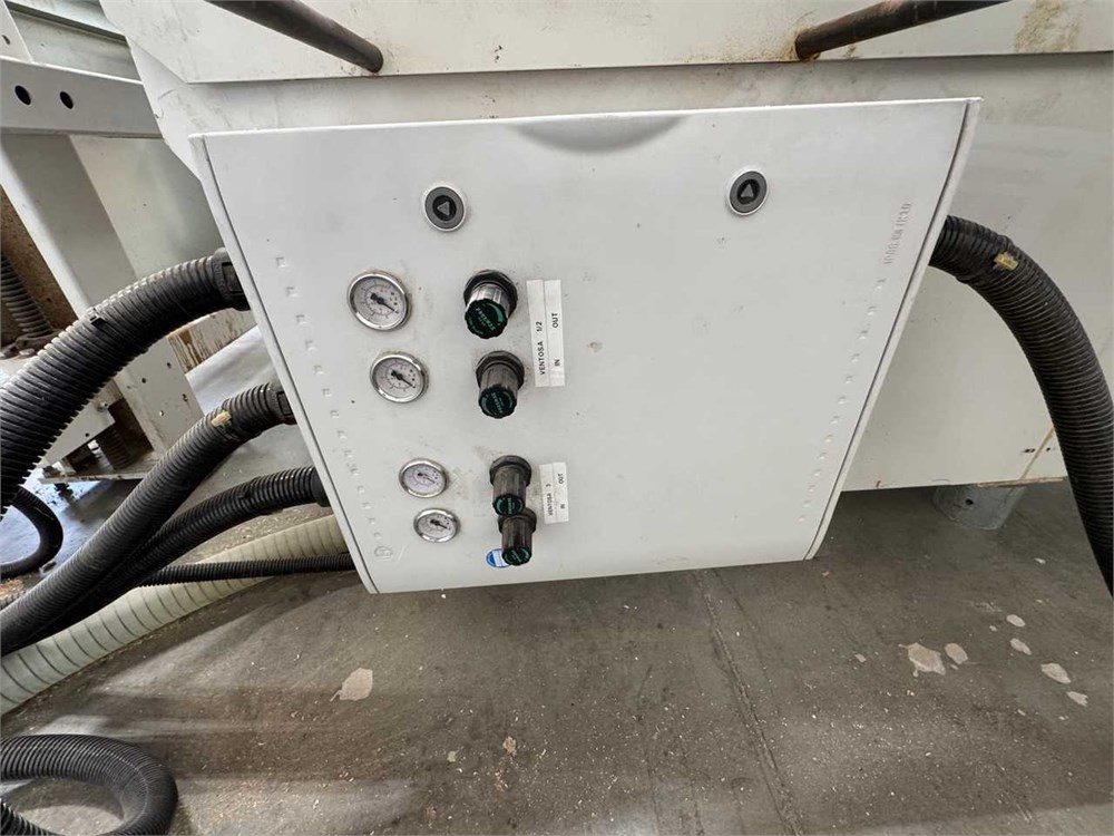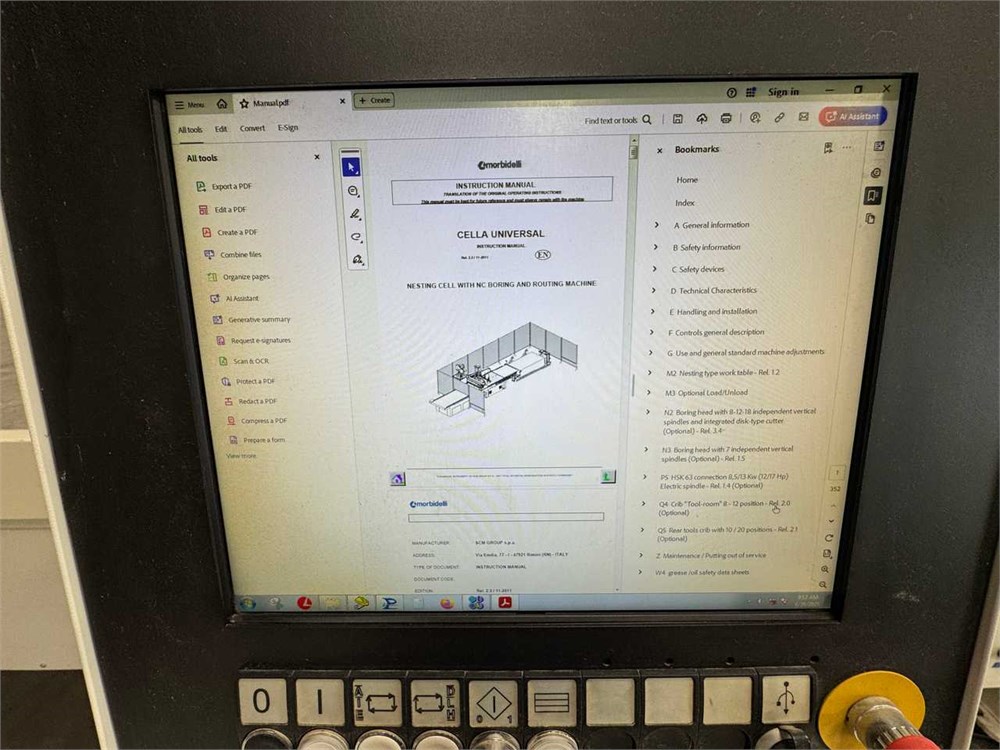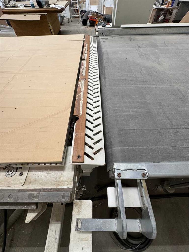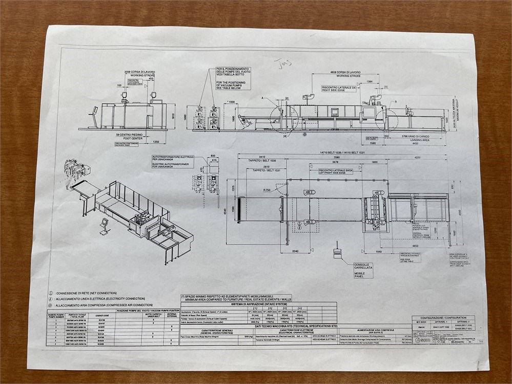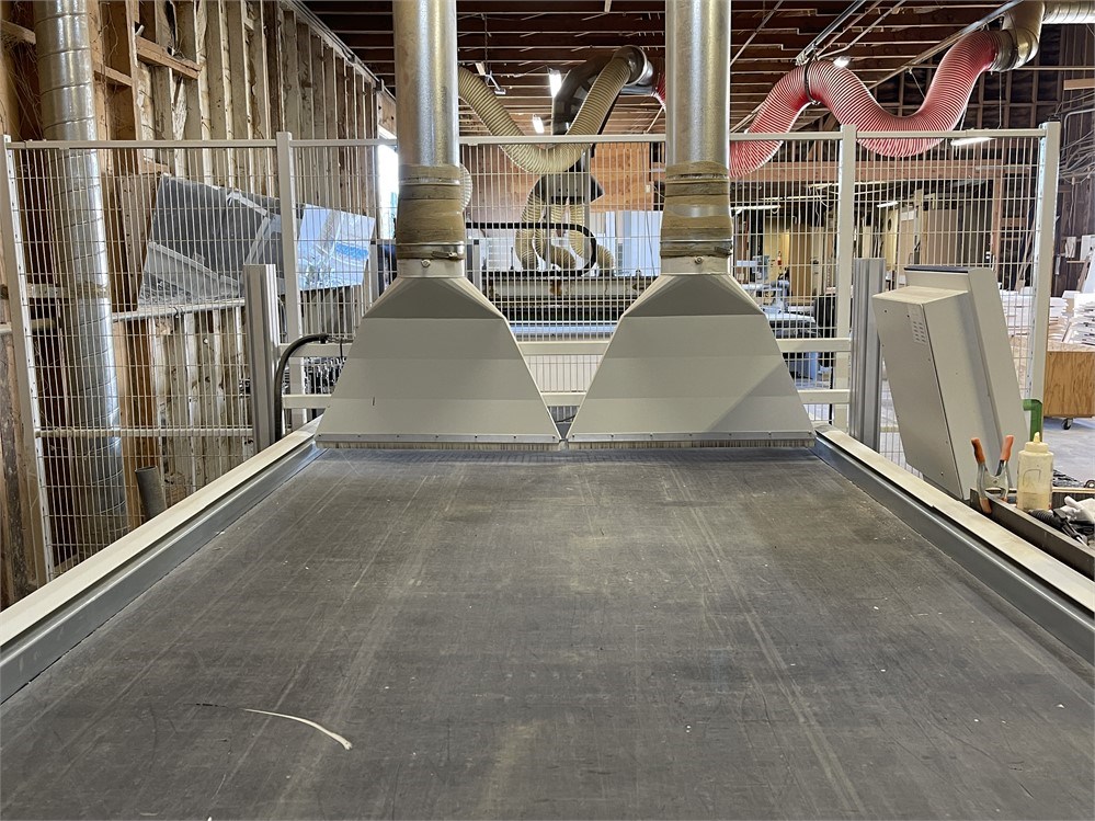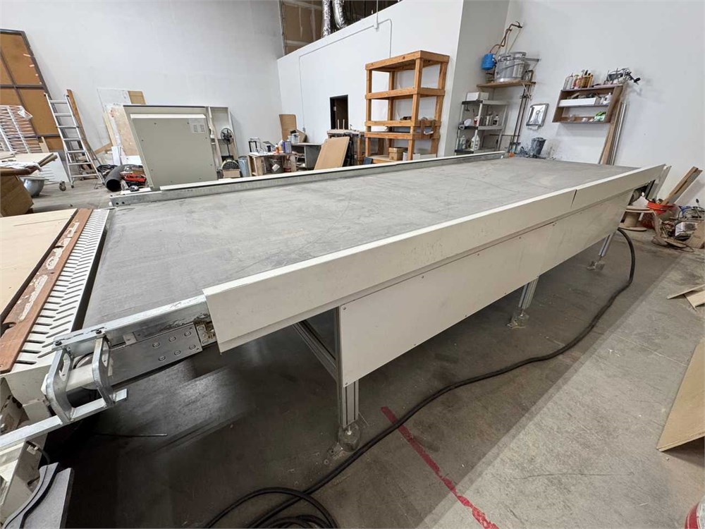 2015 Morbidelli “Universal 3615″ CNC Router Cell See photo of machine layout in pictures Infeed 180″ L x 108″ W x 48″ H (overall size as setup for production) Scissor lift table Machine 200″ L x 108″ W x 110″ H (overall size as setup for production) 60″ x 144″ router table Aluminum Eight (8) vacuum zones Pneumatic reference stops Gridded for custom gasketing Drill unit Eighteen (18) vertical spindles 3 HP motor 1,000 – 6,000 RPM Router HSK 12 HP 1,000 – 24,000 RPM Air blowoff nozzle Tool changer Twenty (20) positions Mounted on rear of machine Sound enclosure Panel loading and offloading devices Foot pedal operation Air-conditioned electrical cabinet Outfeed 190″ L x 72″ W x 68” H (overall size as setup for production) Motorized belt conveyor Top and bottom dust collection Safety fencing Front safety photo eyes PC control on mobile stand Windows operating system XILOG Plus operating software Standard keyboard and mouse Manuals downloaded on PC PC password “morbi” Remote control pendant External electrical transformer Vacuum pumps NOT included, offered in lots 002 and 003 Dust pipe and flex hose NOT included
