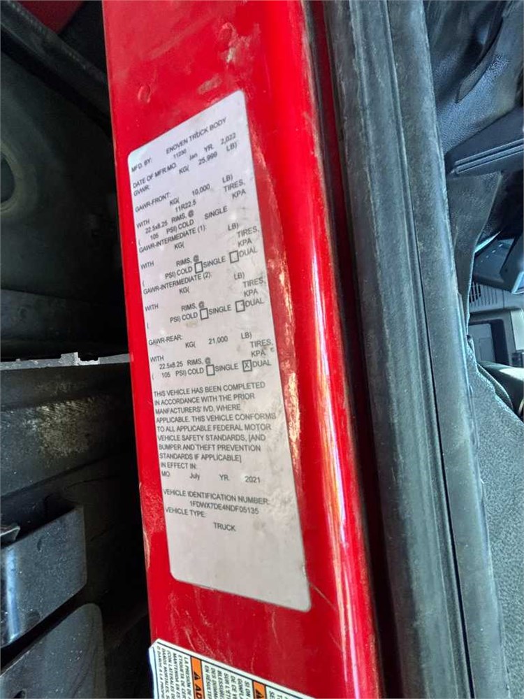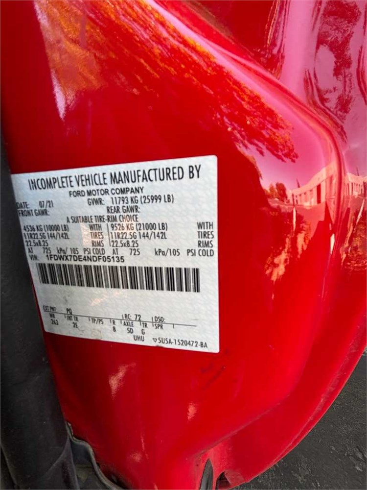 Serial Number: 1FDWX7DE4NDF05135 (VIN), 22723J3 (CA license plate)