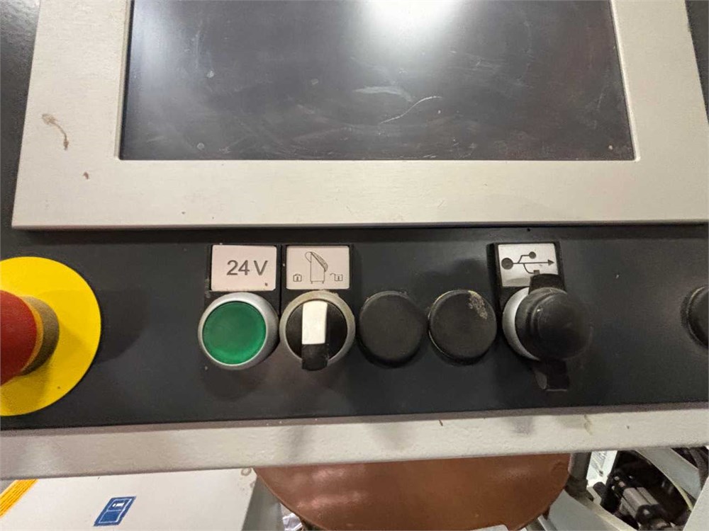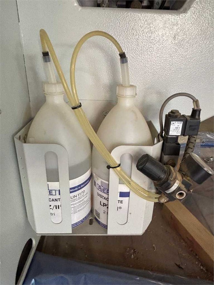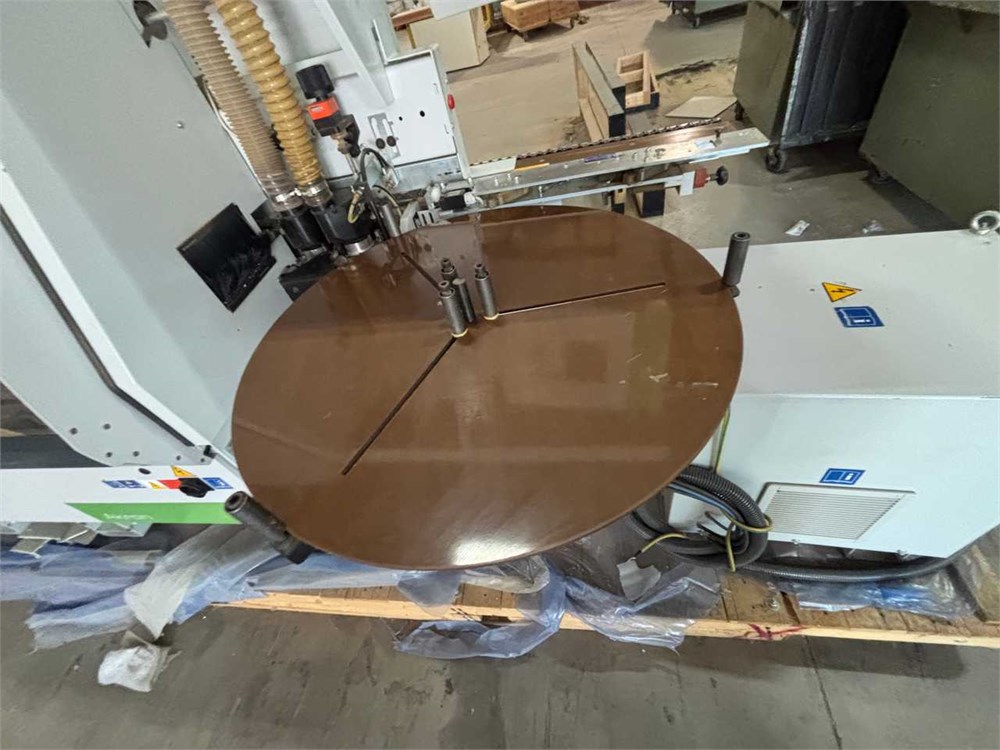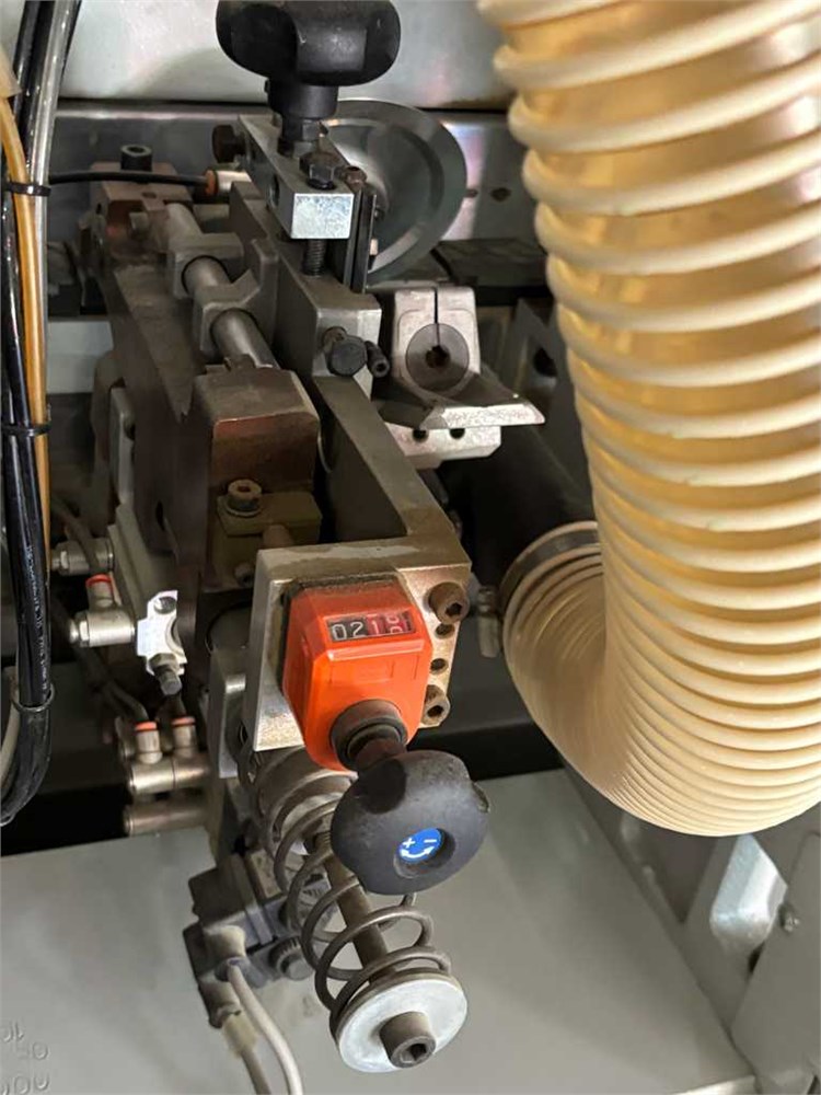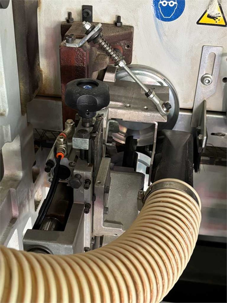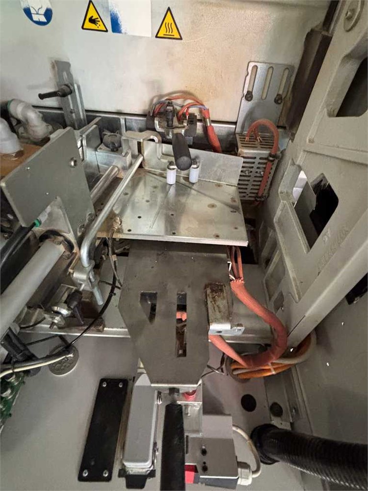 Biesse “Akron 1430″ Edgebander This machine has not been setup/run in production since purchase Min. panel height: 10 mm, Max. panel height: 60 mm, Height of edgebanding material: 14-64 mm, Thickness of edgebanding material in rolls: 0.4-3 mm, Thickness of edgebanding in strips: 0.4-12 mm, Min. panel protrusion from the track: 25 mm, Panel length: 140 – 3200 mm, Min. panel width (with length 140 mm): 85 mm, Min. panel width (with length 250 mm): 50 mm. 39 – 59 FPM feed speed Motorized top beam positioning Touch screen controller Edgebanding infeed table Guillotine Infeed fence Anti-adhesive spray unit Two (2) motor pre-milling unit Quick-change glue pot with application roller Pressure unit with one (1) driven roller and two (2) idle rollers Two (2) motor end trimming unit Top/bottom fine trimming unit Top/bottom profile scraping unit with external collection box Top/bottom flat scraping unit Top/buffing unit Hot air unit Lighted sound enclosure Outboard roller support External electrical transformer