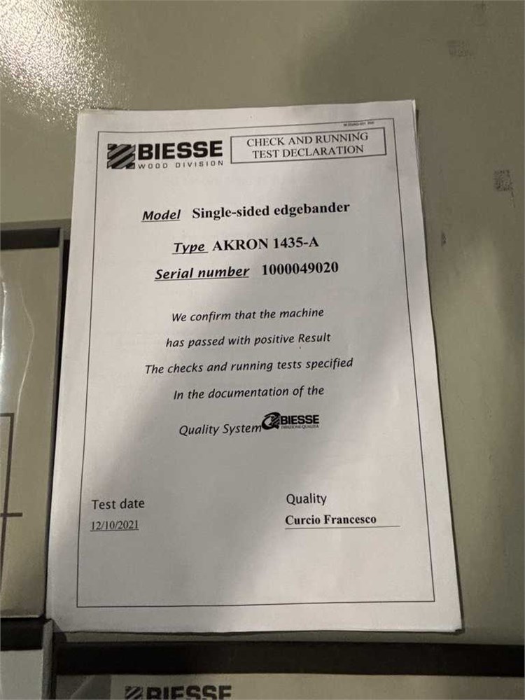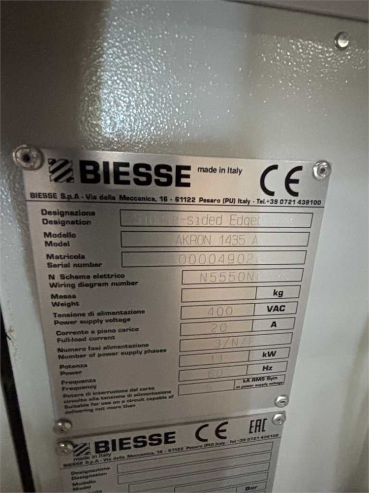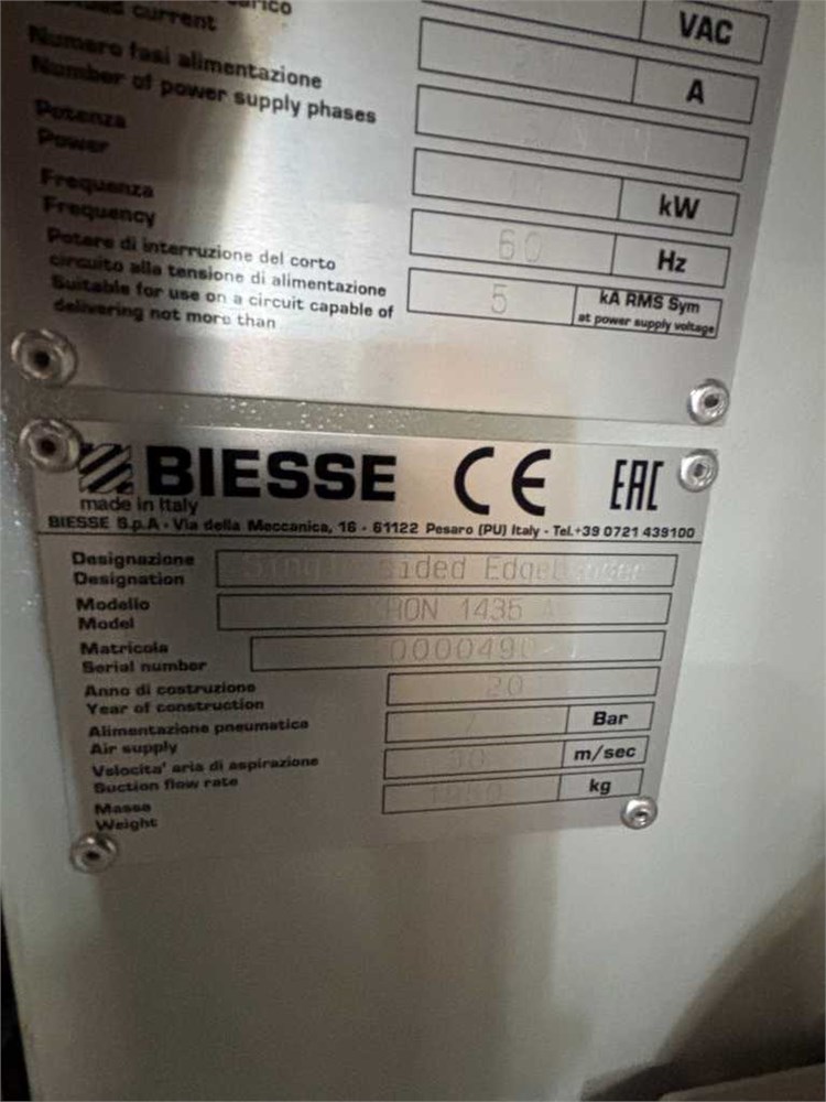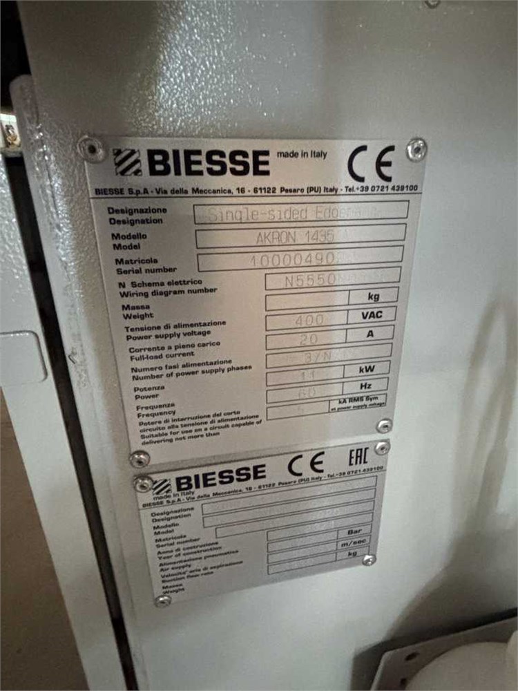 Biesse “Akron 1435 A” Edgebander (2021) Min. panel length: 140 mm Min. panel width (with length 140