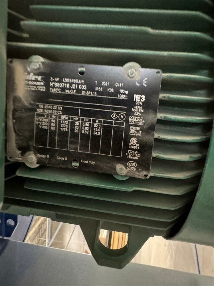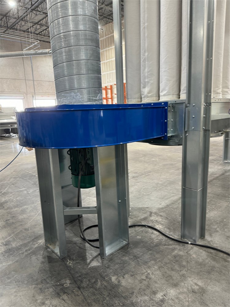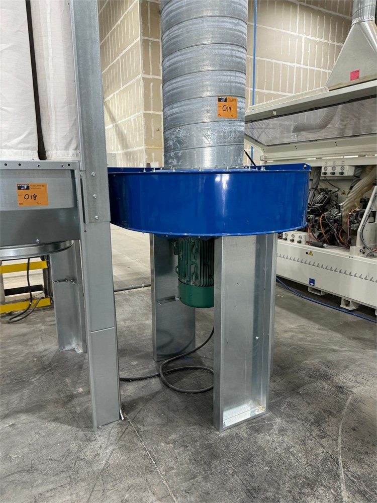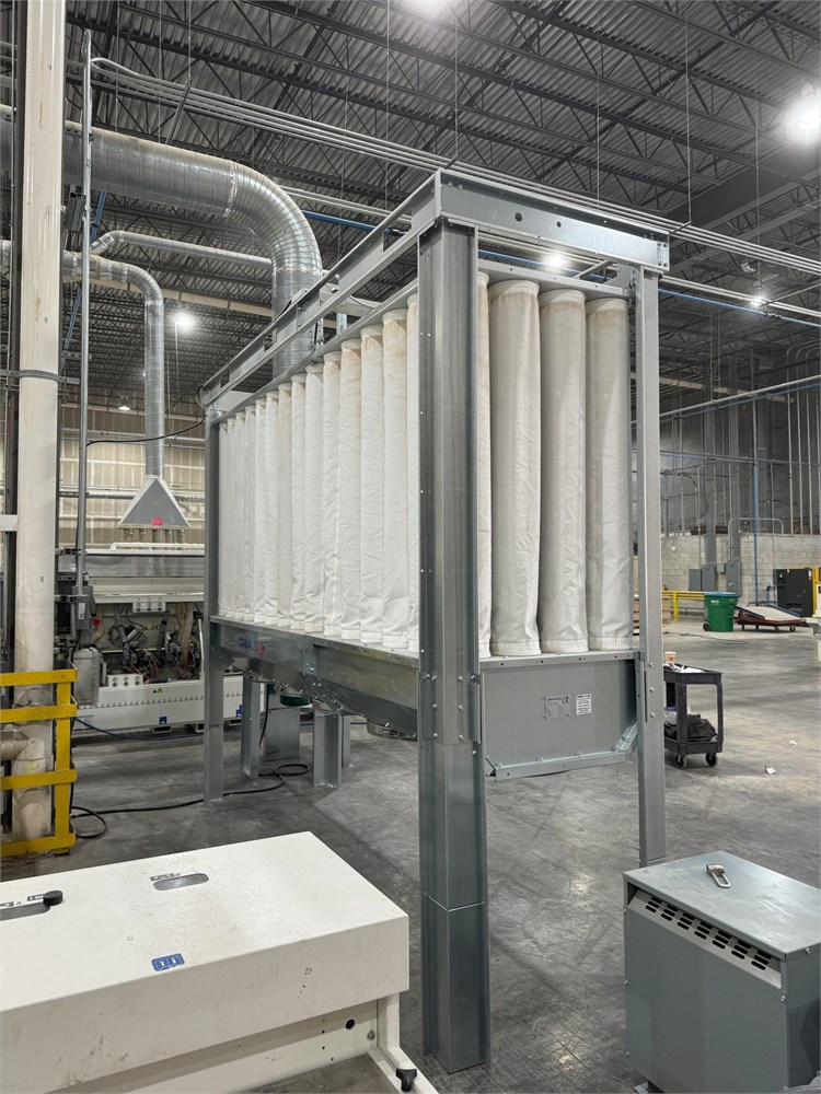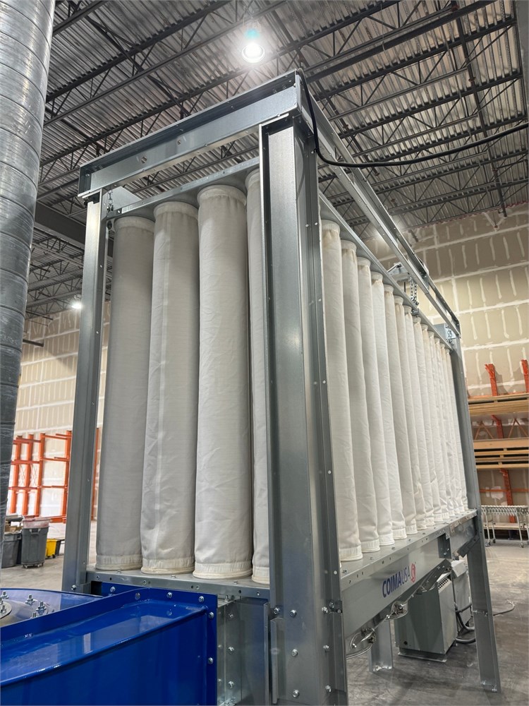 Coima “SHK5″ Dust Collector (2022) The SHK Series enclosureless dust collector is designed for the collection of sawdust and is ideal for indoor use in smaller wood shops, or for more localized extraction dedicated to specific woodworking machinery. The collector may also be used when working with other materials such as plastics, grains & flours, stone dusts and more. The integral mechanical shaker cleaning system increases production time by reducing labor required to maintain filter efficiency. The filters can be mechanically shaken after the fan is switched off (per NFPA guidelines). The filter housing supports anti-static polyester filter sleeves fixed by double snap rings into a tube sheet, which is mounted atop the material collection hopper that empties the collected material into plastic bags. The collector frame is made of durable 14 GA galvanized sheet steel. The material handling fan is rated for S1 duty cycle (continuous running), and features a premium-efficiency IP55 motor. 11” Static pressure 7,100 CFM (5) Waste bags 20 HP 595 SQ’ Filter area (60) Filters