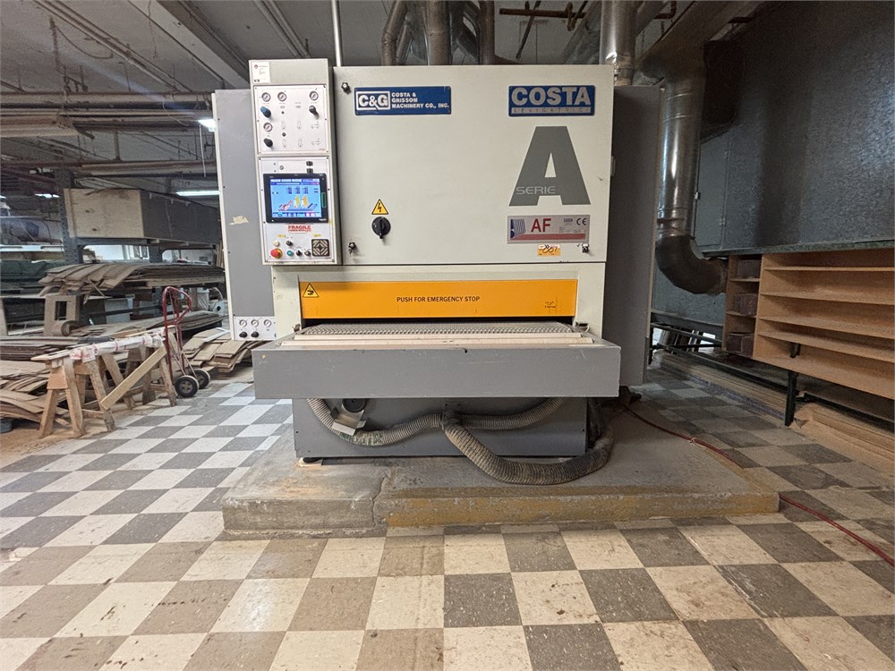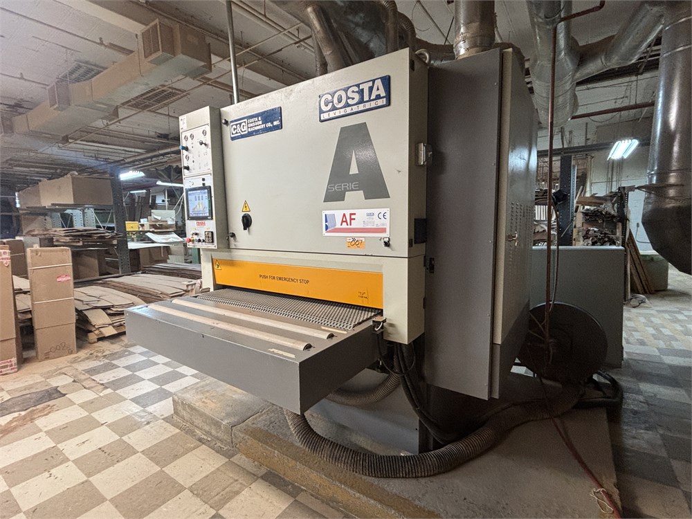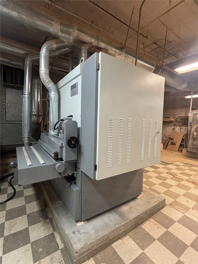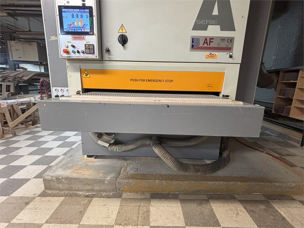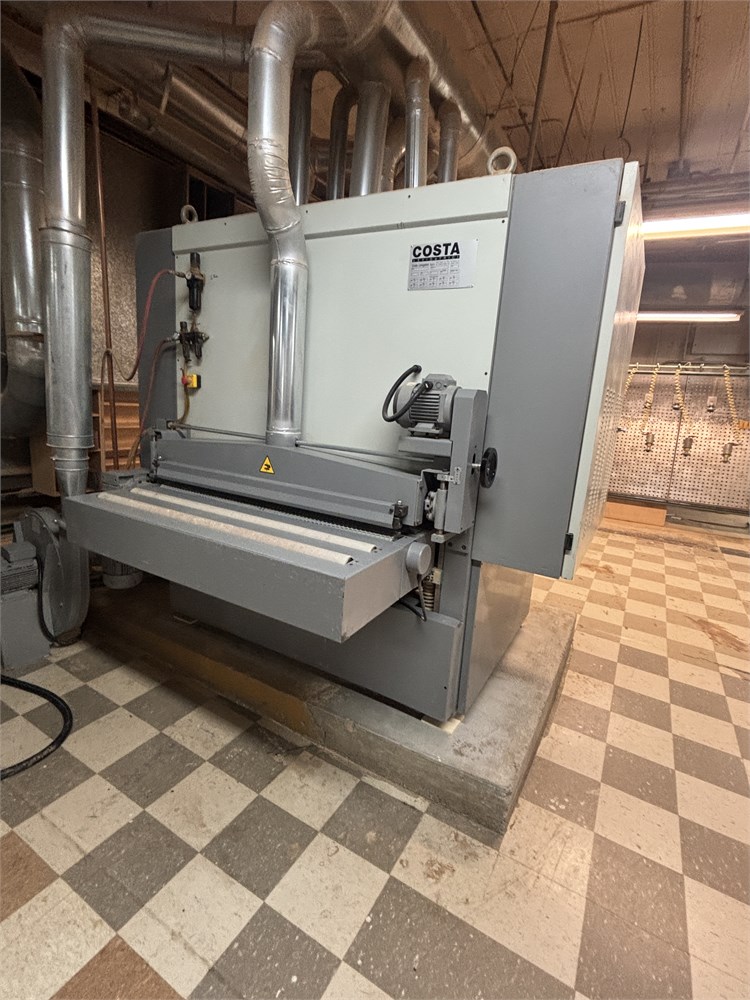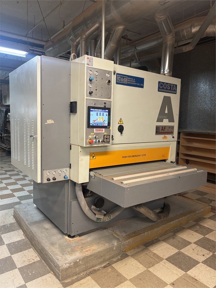 Costa “AF TRCT 1350″ 2-Head Wide Belt Sander Maximum Working Width – 53 inches (1,350 mm) First Head – Rubber‑covered calibration/contact roller -30 HP Second Head – Platen style – 24 HP Belt Size – 53” x 128″ Variable Speed – 10–50 FPM Vacuum Conveyor Bed – 7 HP Suction blower Electronic tracking Pneumatic belt tensioning Load meters Thickness readout