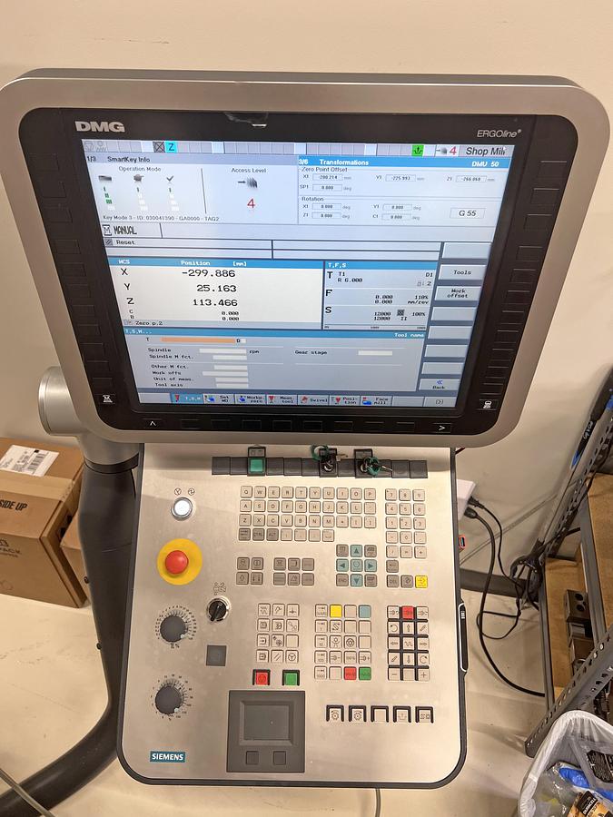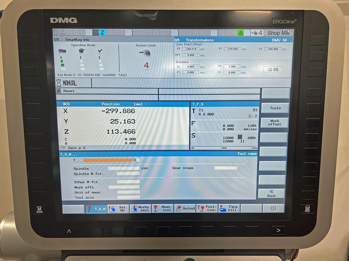 - Control: Siemens 840D solutionline with ShopMill Open; DMG ERGOline, 19″ display, DMG LIGHTline