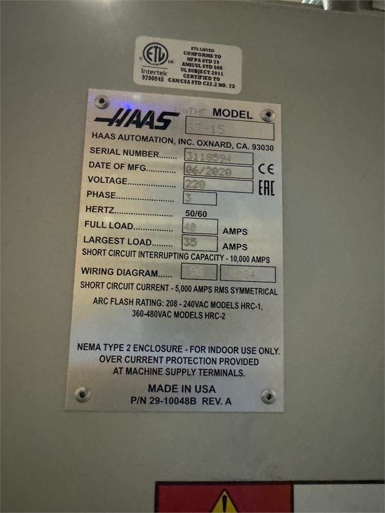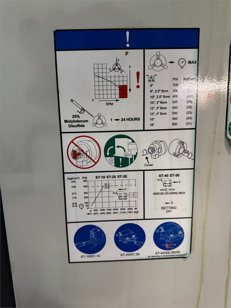 HAAS “ST 15″ Big Bore Lathe SEE PDF 20 HP Motor @ 4,000 RPM Chuck Size 8.3” Maximum Part Swing 16 1/