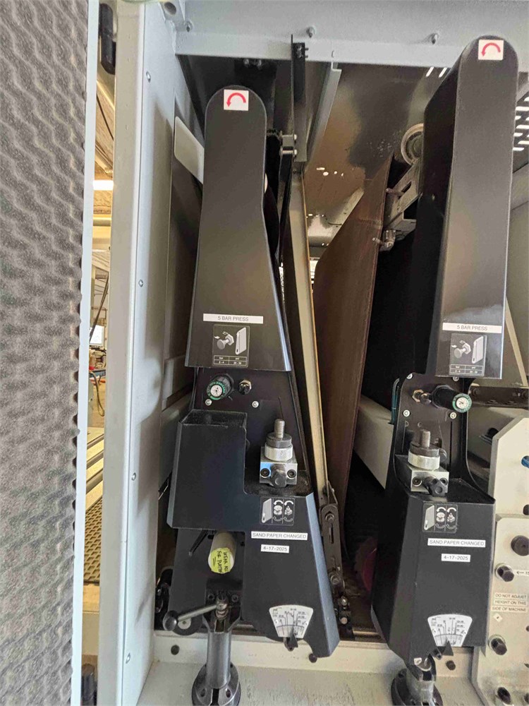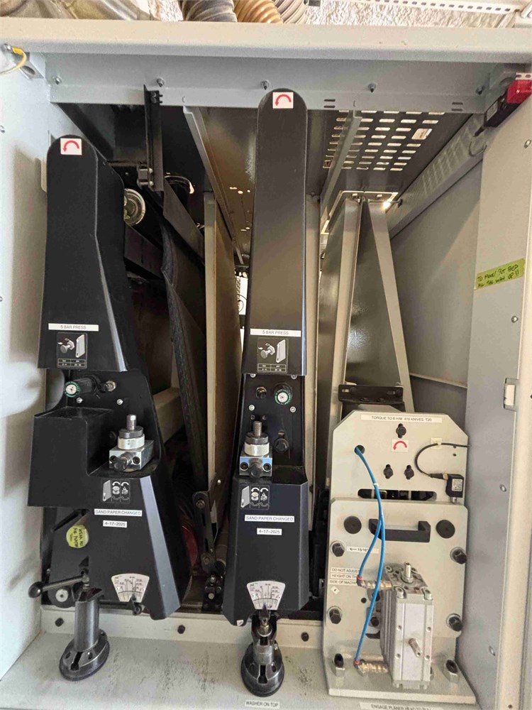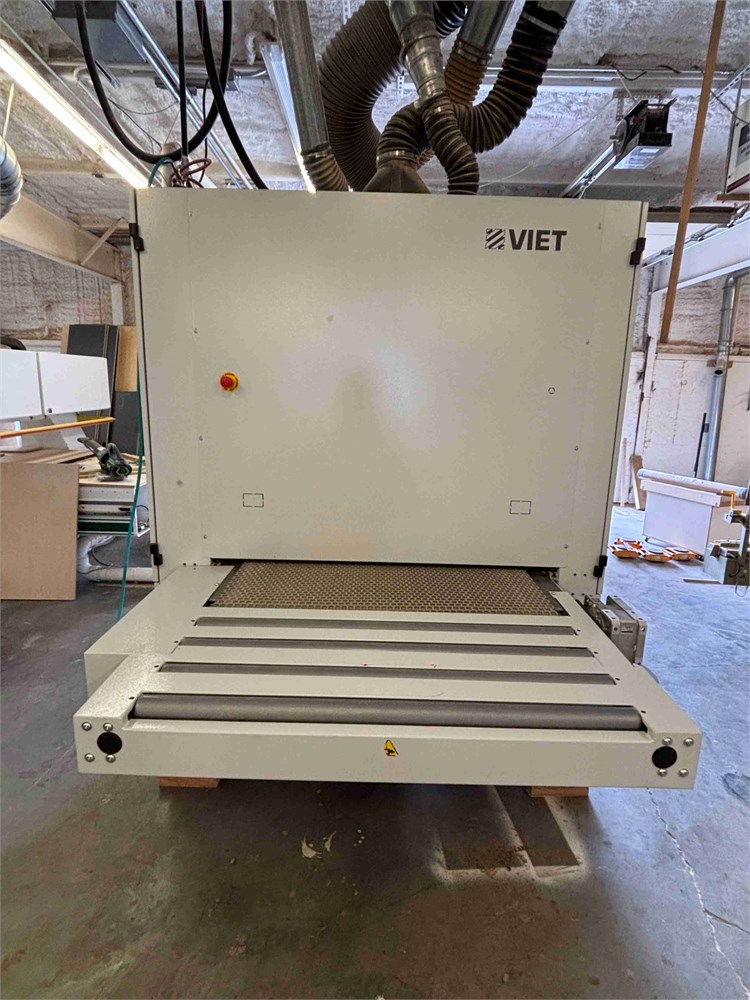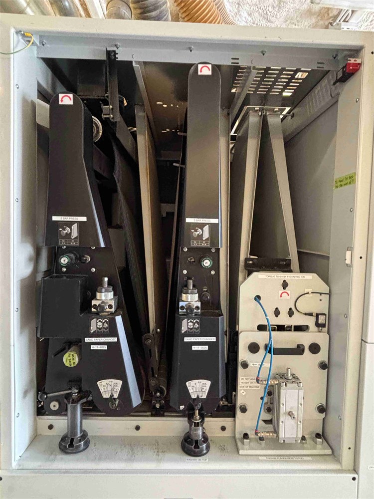 Viet “S2 31 F6 HR/KRT” Planer & 2 Head Widebelt Sander See video 43″ width capacity 1st head knife planer with carbide inserts 2nd head drum 3rd head combi drum/platen 4 idle infeed rollers 4 idle outfeed rollers Automatic thickness setting Electronic raise & lower Each head on/off selectable 1st & 2nd motor load meters