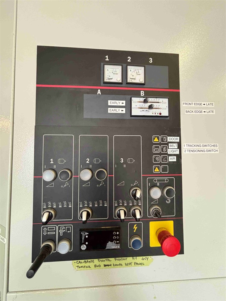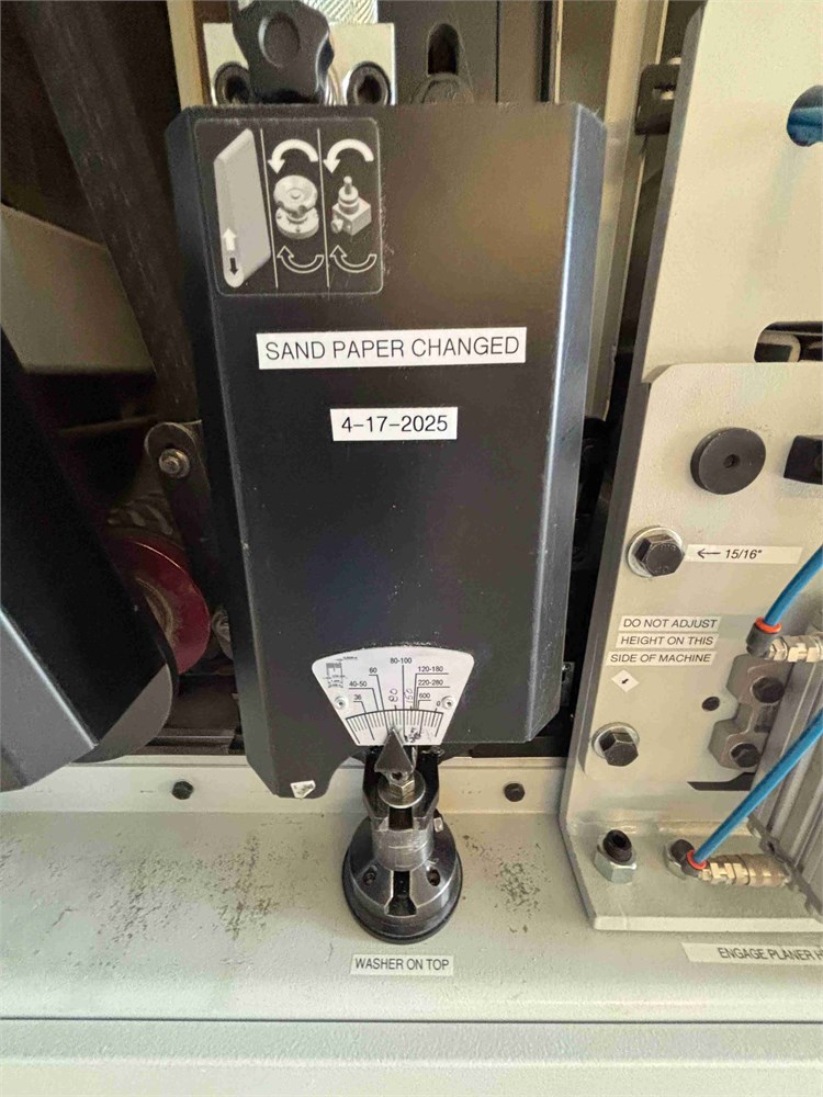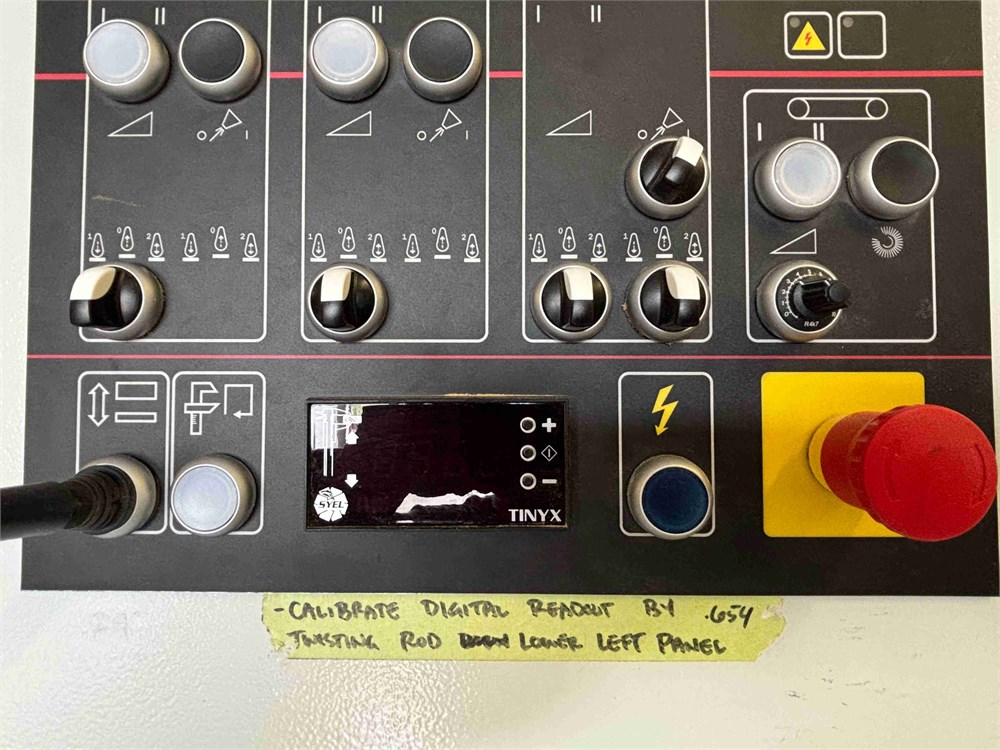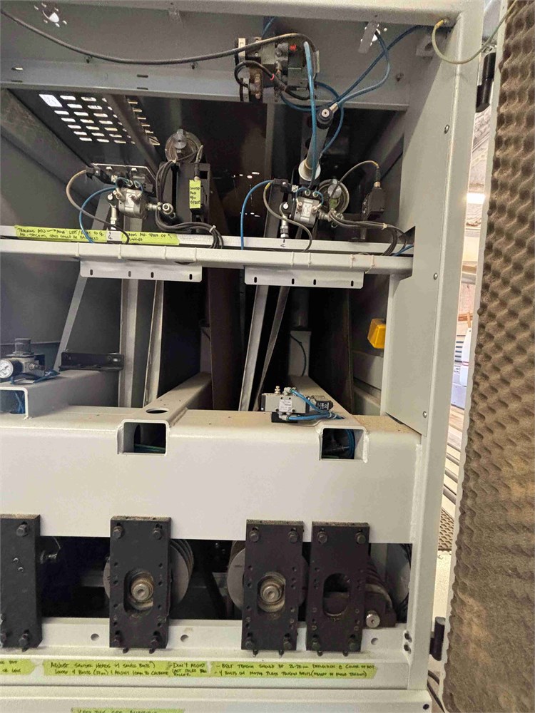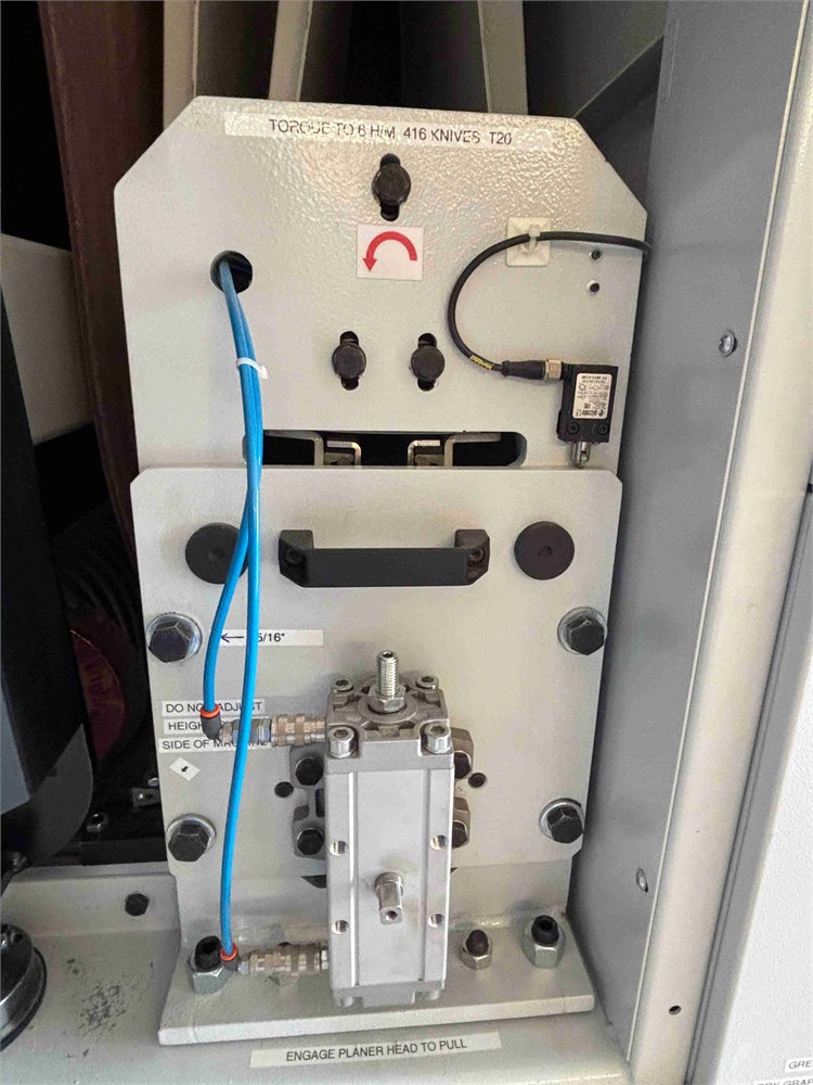 Viet “S2 31 F6 HR/KRT” Planer & 2 Head Widebelt Sander See video 43″ width capacity 1st head knife planer with carbide inserts 2nd head drum 3rd head combi drum/platen 4 idle infeed rollers 4 idle outfeed rollers Automatic thickness setting Electronic raise & lower Each head on/off selectable 1st & 2nd motor load meters